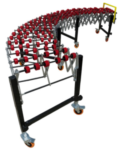 - 500mm wide manually adjustable roller type / skate type conveyor system.
